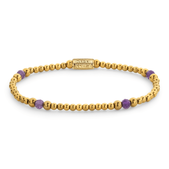 Bepaal je eigen stijl met deze Rebel & Rose kralenarmband Touch of Purple Glam Rocks RR-40172-G. Deze armband is met oog op duurzaamheid vervaardigd uit een roestvrijstalen sluiting en natuurstenen. Door het gebruik van natuurstenen is elke armband uniek, net als jij. Rebelleer als een free spirit en kies voor authenticiteit met de juwelen van Rebel & Rose. Bestel je online bij Jan Maes, dan mag je vertrouwen op een verzorgde thuislevering.